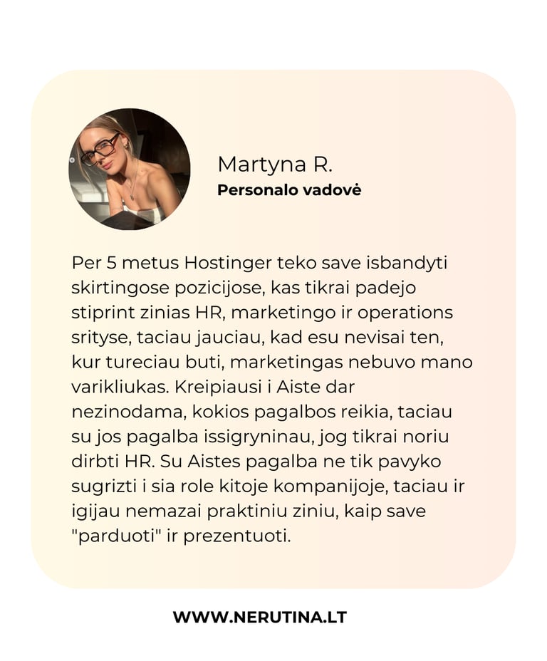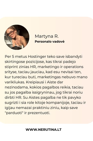 Karjeros strategija ir krypties keitimas – padedu rasti aiškumą, kai norisi išeiti iš išaugto vaidmens, sustiprinti savo pozicionavimą ar pradėti naują etapą.